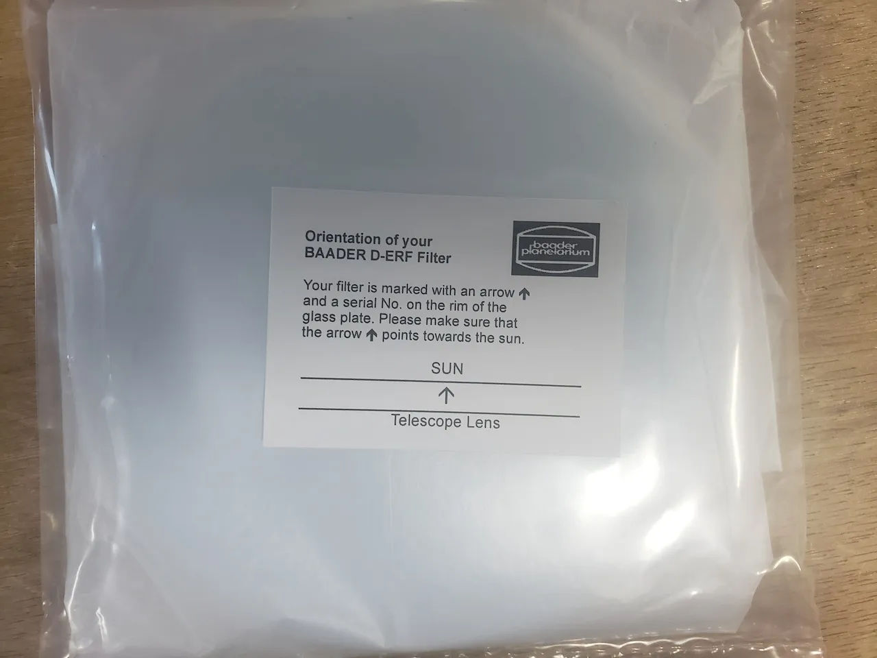 D-ERF: filtre à réflexion d'énergie diélectrique de 5,0 mm d'épaisseur, diamètres au choix. Ces filtres s'installent à l'avant des télescopes ou lunettes astronomiques, pour permettre l'observation du Soleil dans la raie H-alpha (avec d'autres accessoires). Ils sont essentiels pour rejeter la chaleur et l'empêcher de pénétrer le tube de l'instrument.