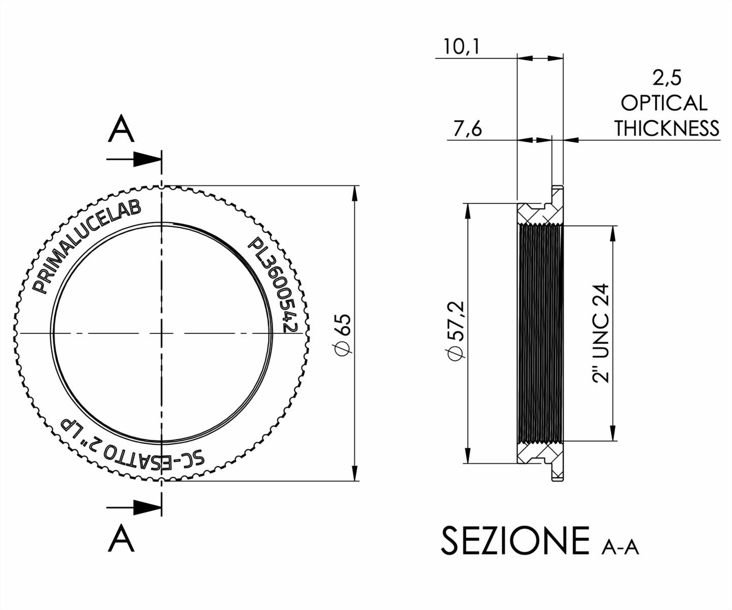 Bague adaptatrice type Schmidt-Cassegrain 2'' femelle vers ESATTO 2'' LP - PrimaLuceLab