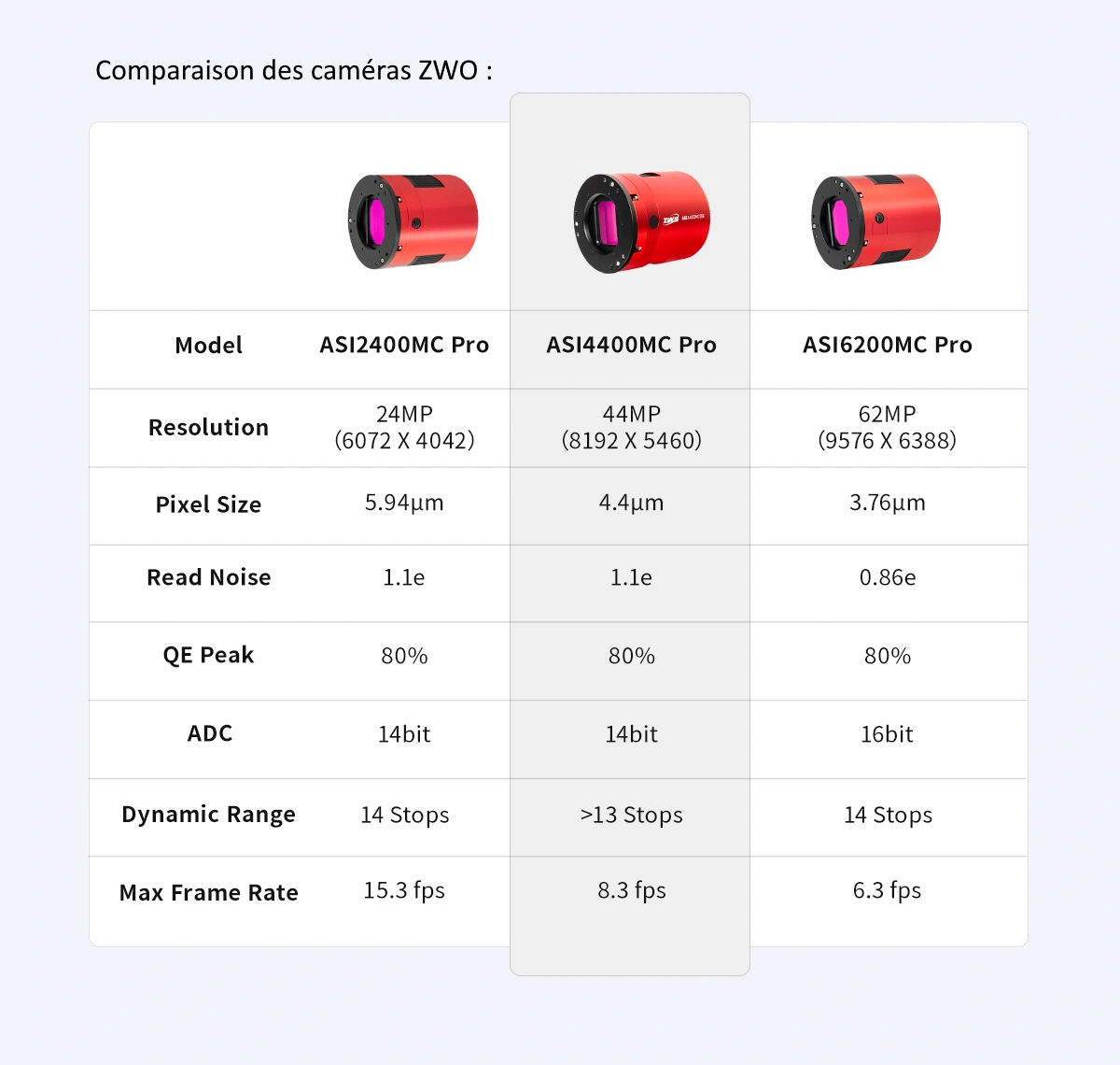 La valeur QE (Quantum Efficiency) maximale de la caméra ASI4400MC Pro est de 80 % !