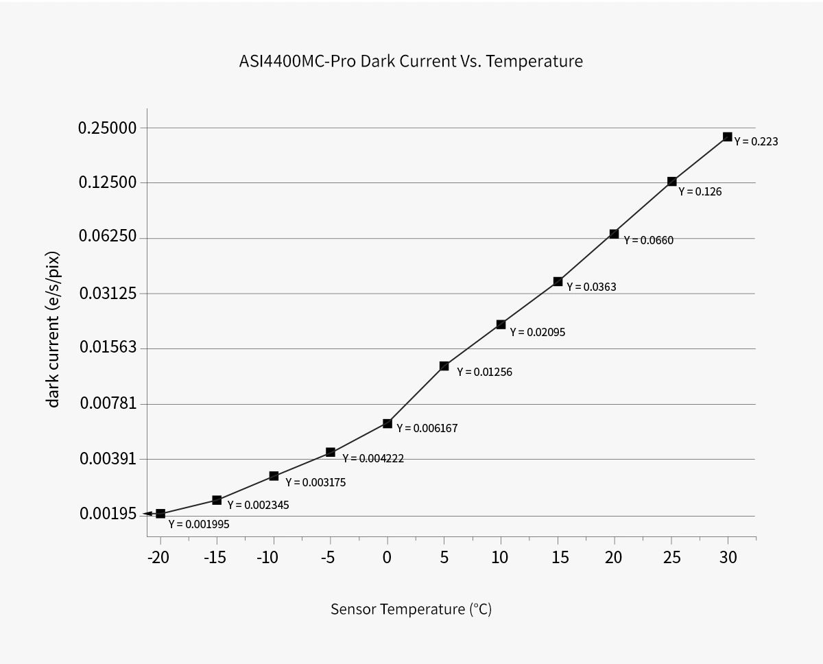 Grâce au système de refroidissement avancé de l'ASI4400MC Pro, le bruit thermique reste extrêmement faible, même lors de longues expositions de plusieurs minutes. Le courant d'obscurité est un faible signal électrique généré par la chaleur interne du capteur, et non par la lumière incidente. En maintenant la température du capteur à un niveau bas, la caméra minimise cet effet, produisant ainsi des images plus nettes et de meilleure qualité, avec des arrière-plans plus lisses.