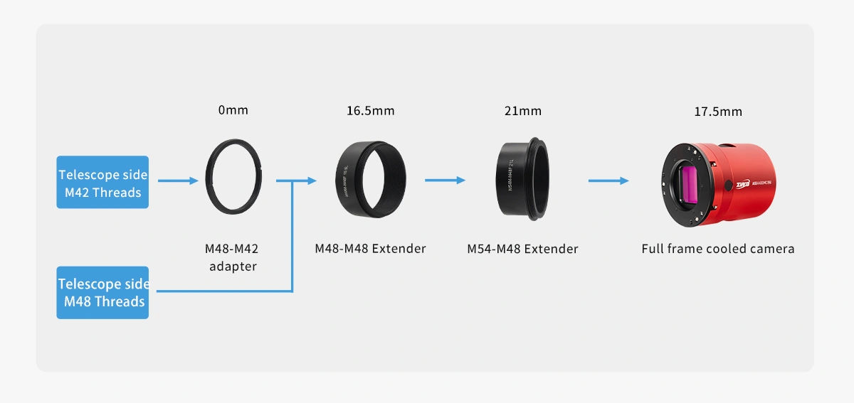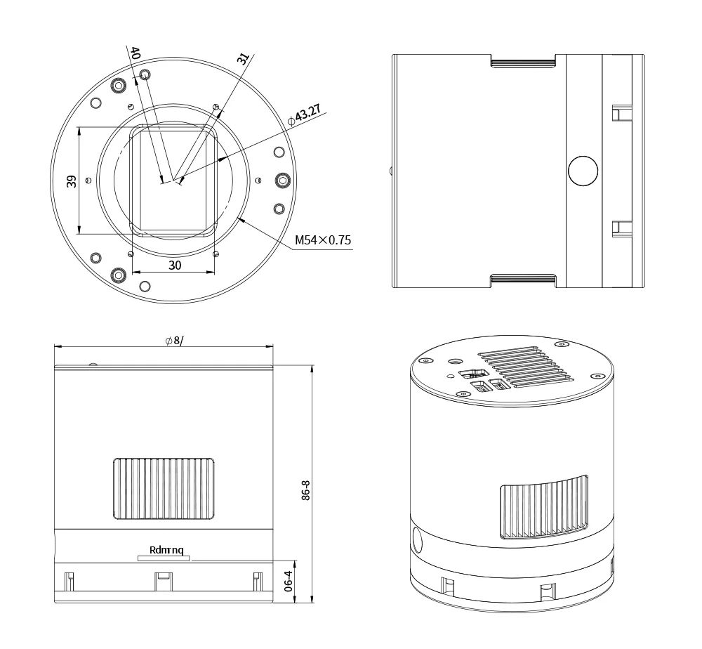 - Filetage de la caméra : M54x0,75 femelle