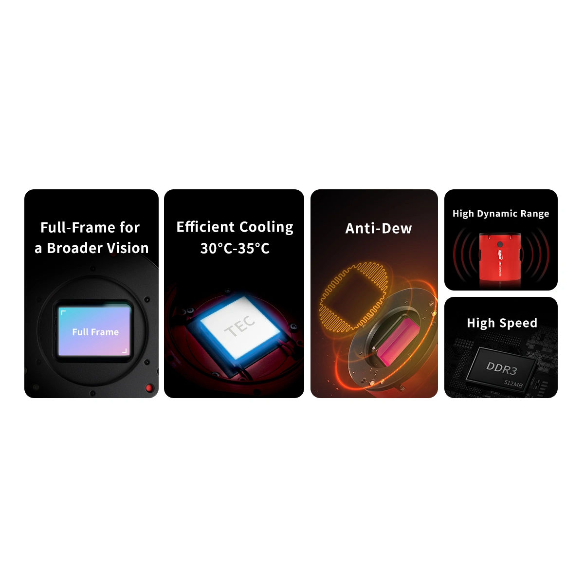 Cette conception garantit un transfert de données rapide et stable, tout en réduisant les risques de perte d'images ou d'erreurs de transmission. Il en résulte une capture d'image fiable, même lors de longues expositions ou de téléchargements à haut débit.