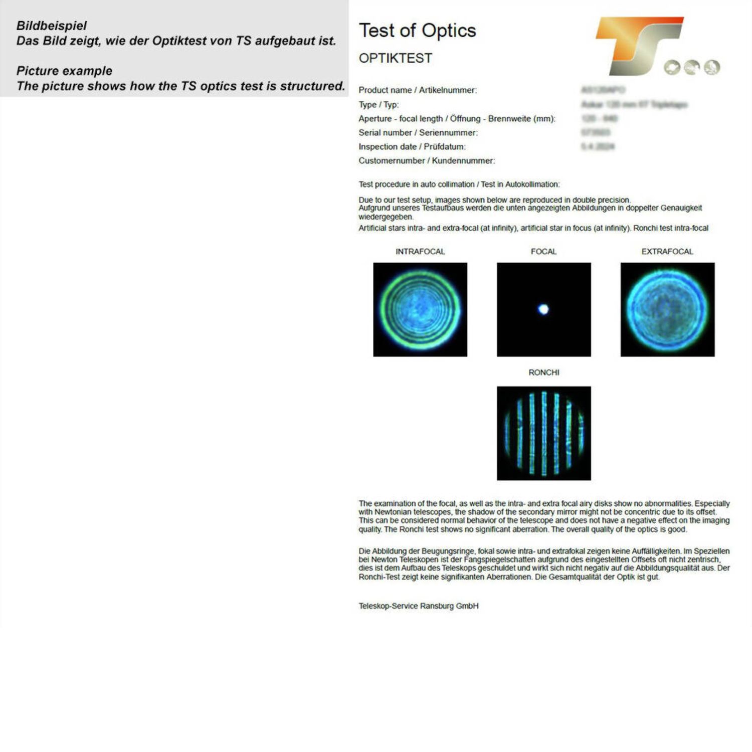 - Chaque lunette Apo est vérifié avant l'expédition et l'optique est testée - vous obtenez une lunette réglée de manière optimale pour une photographie et une observation réussies dès le départ.