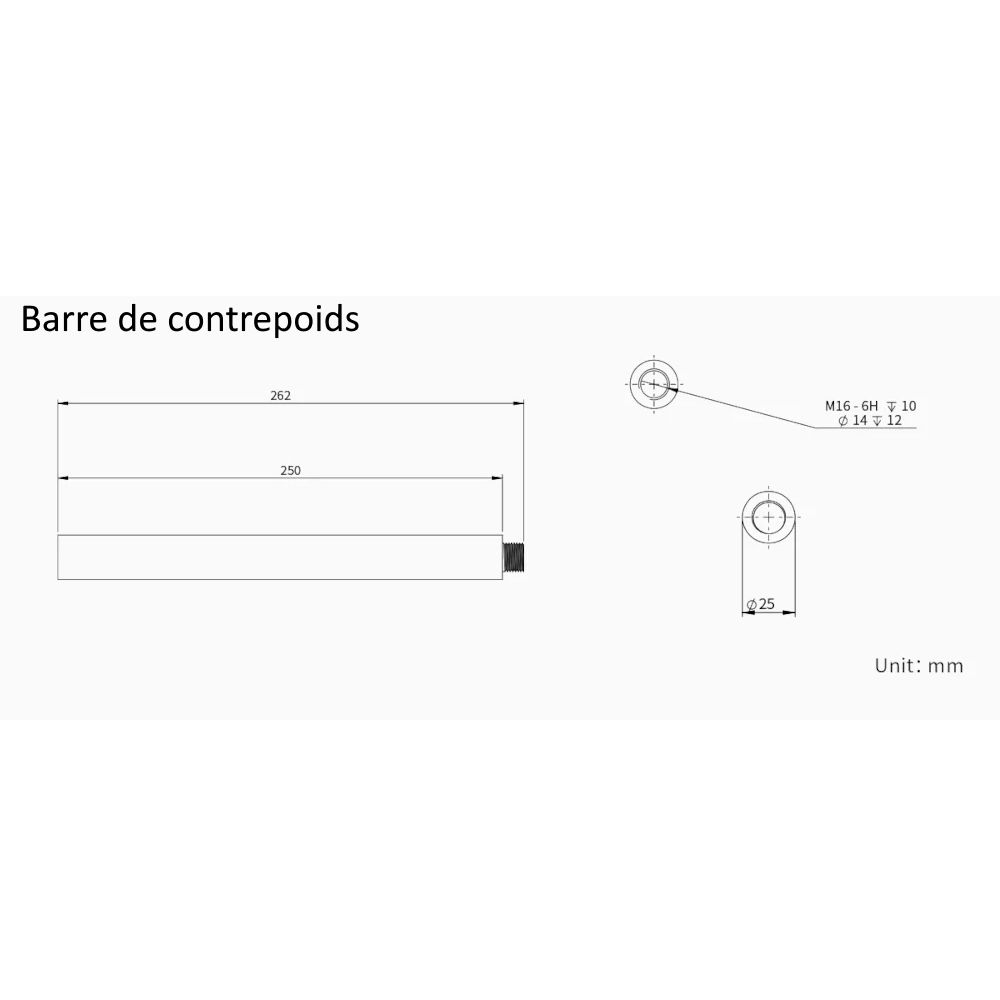 - Barre de contrepoids (incluse) Longeur 250mm - Diamètre 25mm - Filetage mâle M16