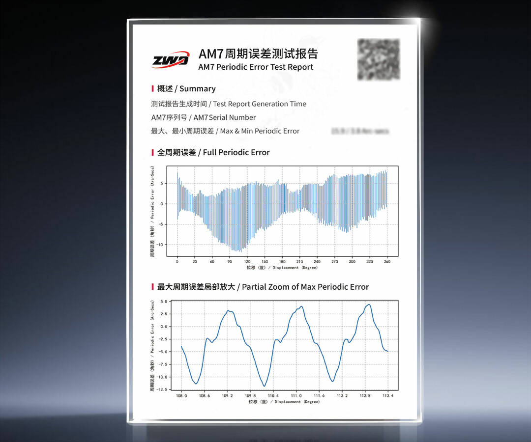 Chaque modèle AM7 est testé individuellement avant expédition. Vous recevrez un rapport personnalisé sur la courbe d'erreur périodique de votre monture, vous permettant d'évaluer précisément les performances de suivi de votre instrument.