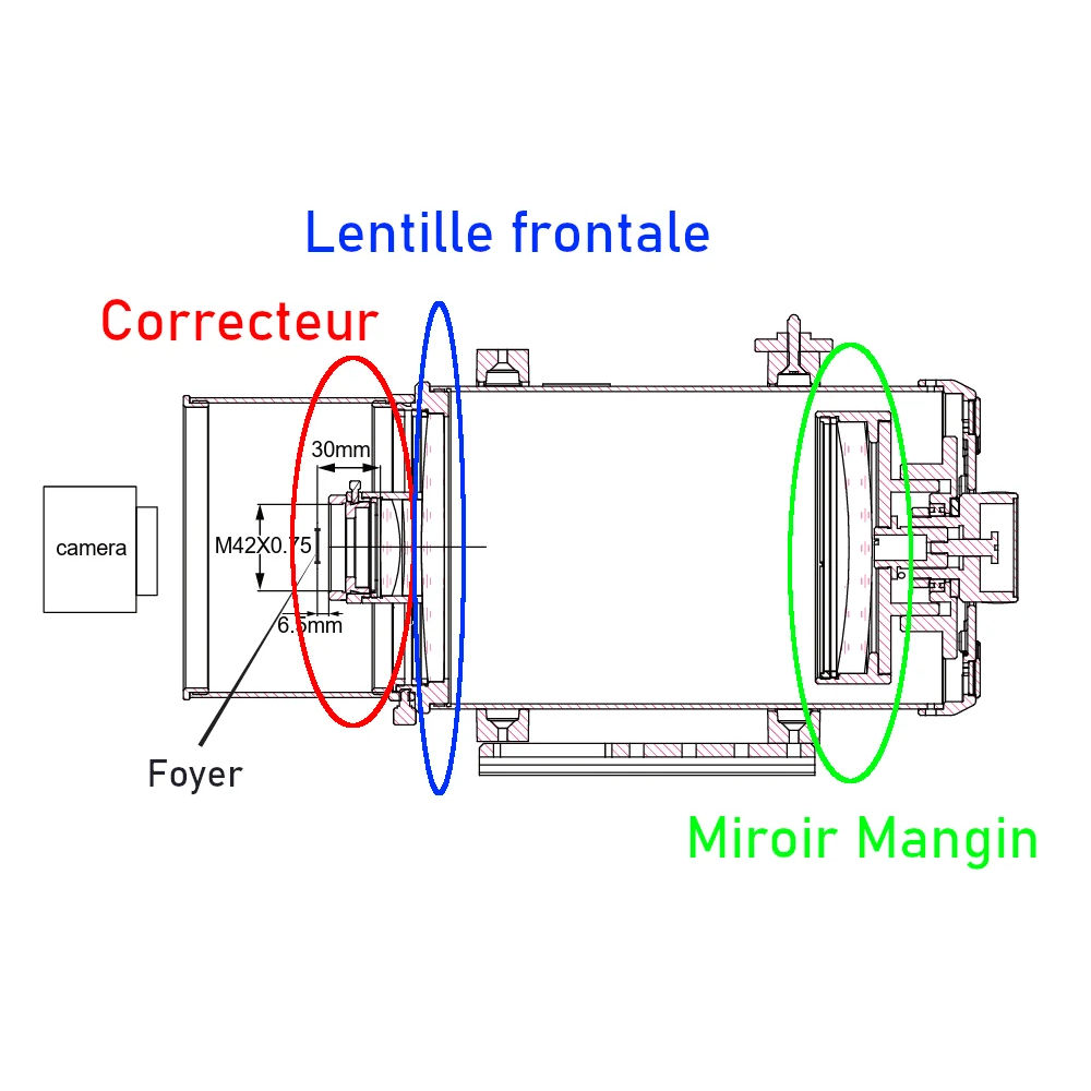 - Cercle image corrigé : 16 mm (compatible IMX 533 / IMX585 par exemple)