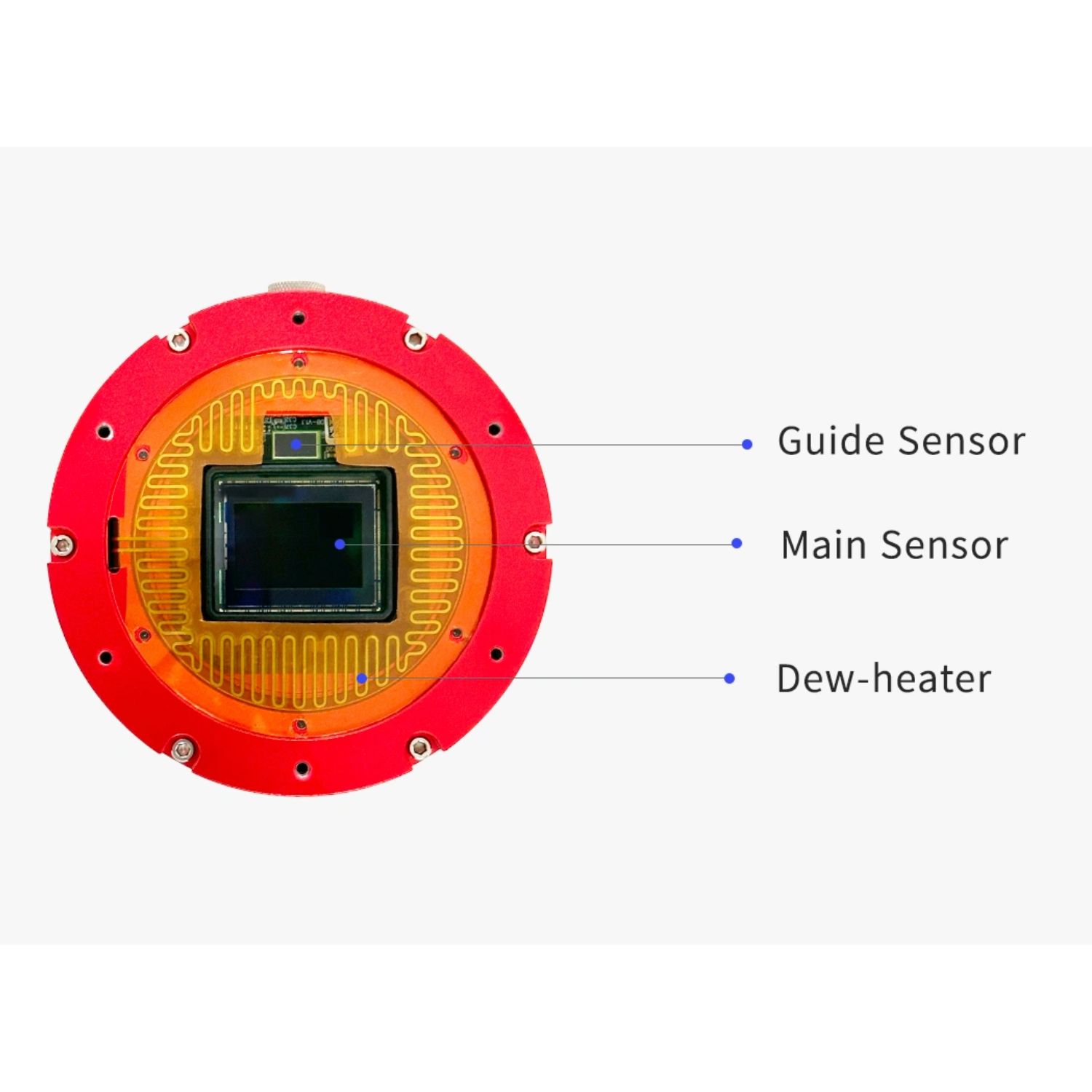 La caméra ASI2600 Duo est équipée d'un hublot traité anti-reflets et anti-infrarouges, et entouré par un élément chauffant résistif qui s'adapte parfaitement à la fenêtre de protection (hublot). Il permet d'éviter tout problème de buée ou de givre sur la "fenêtre" des capteurs, en fonction de l'environnement dans lequel vous prendrez des photos.